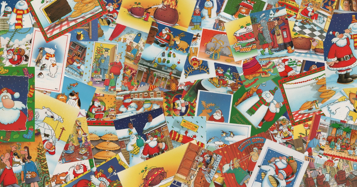 For years, Christmas cards were synonymous with cartoon images of a cake-loving Santa, snowball-throwing snowmen, revenge-seeking robins, IT-literate monks, and custard-lovin’ Christmas puddings. If you’re of a certain age, cartoons like these will instantly trigger feelings of intense festive nostalgia.