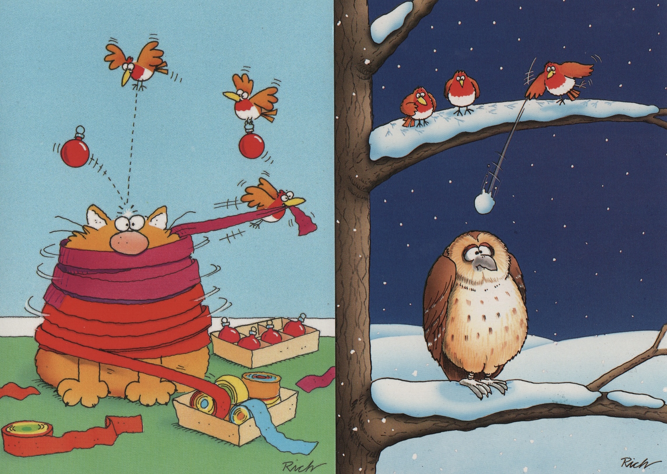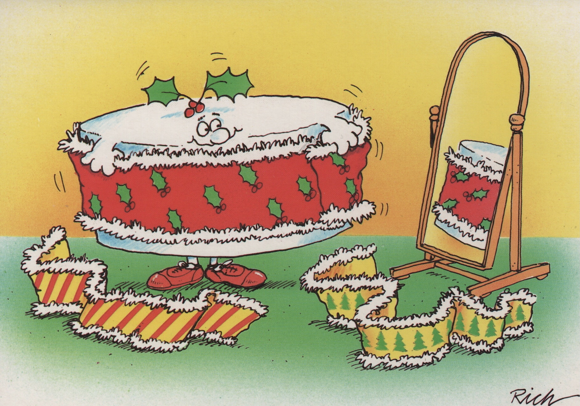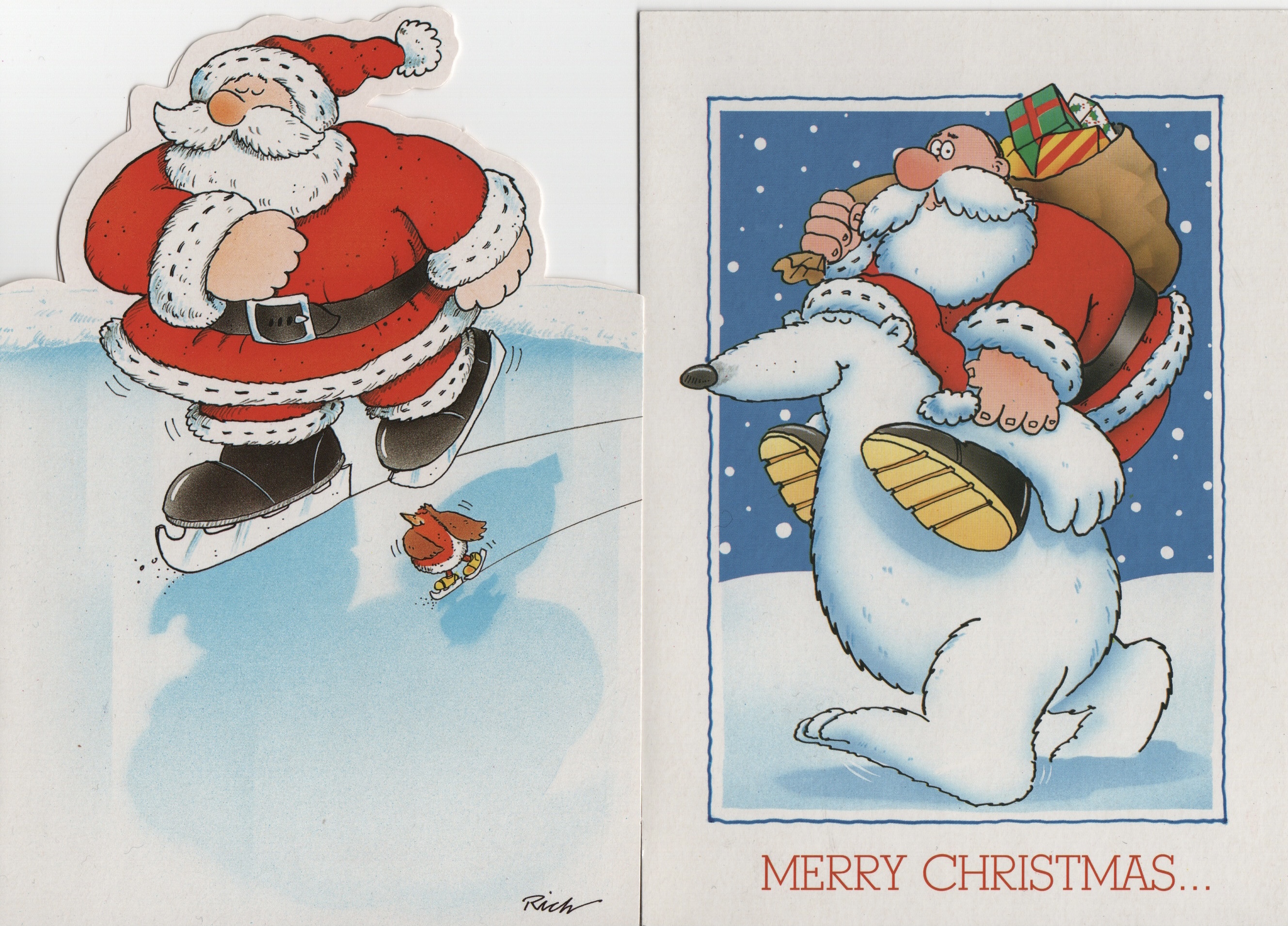 It just wasn’t common practice back then to give artists a credit on their work. I used to sign them and I was eventually credited with my name printed on the card backs. I also got promoted a little by the card company in their Christmas catalogue with my cards being referred to as “By the renowned Richard Skipworth” Alas, this didn’t result in hordes of adoring fans and an army of paparazzi at my door.
