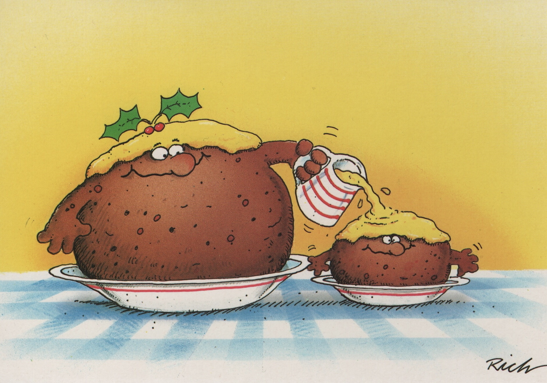 It was the one with my animated Christmas pud, pouring custard over itself. It was part of a set of four featuring those puds. I sent ‘em off in the post, not expecting to get much of a reaction, but…next day, the phone went and it was the Art Director from Webb Ivory. He loved the designs! Even better, he was offering me money! And he wanted to know if I could do a few more along the same lines. And that was the start of things in a big way.