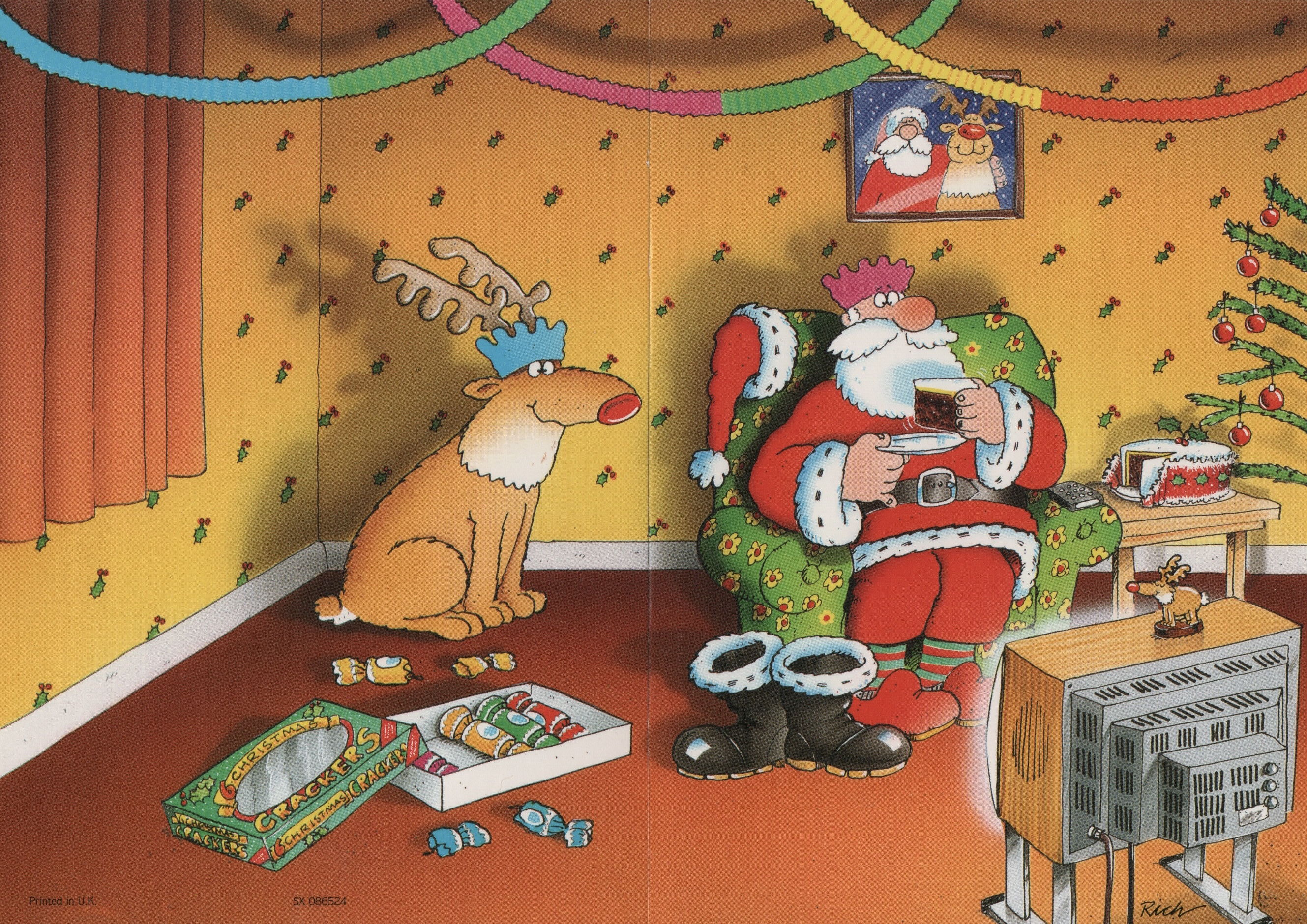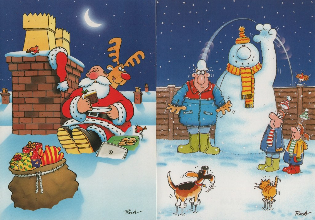 Lovely. Mum, Dad, the dog, presents, selection boxes of sweets. I had a good childhood. Don’t remember any funny Christmas cards though.