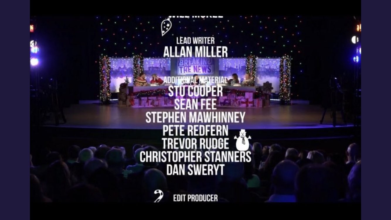 I had my first television credit last year on Breaking the News which was amazing, so my writing goals this year is to definitely get something longer broadcast on television. I also want to hopefully sell a script somehow, like to a friend or a passing neighbour.