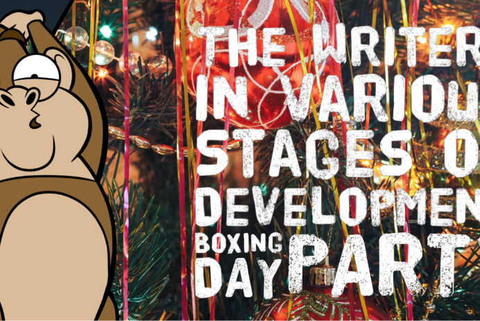 I’ve brought the emergency chairs down from the attic and crammed a group of writers of interviews past into my virtual living room for the first ever Writers in Various Stages of Development Boxing Day Party!